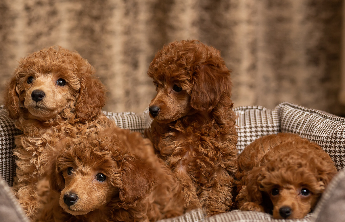 Start puppy-proofing your home by removing all the hazardous materials and objects – hide cables, remove toxic plants, move trash cans, block off rooms your teacup poodle puppy shouldn’t enter, and create a safe space for your puppy using a dog playpen. Additionally, hide any object that may shred to pieces and become a choking hazard, as teacup poodle puppies are extremely curious and may chew on anything that comes close to their mouth.